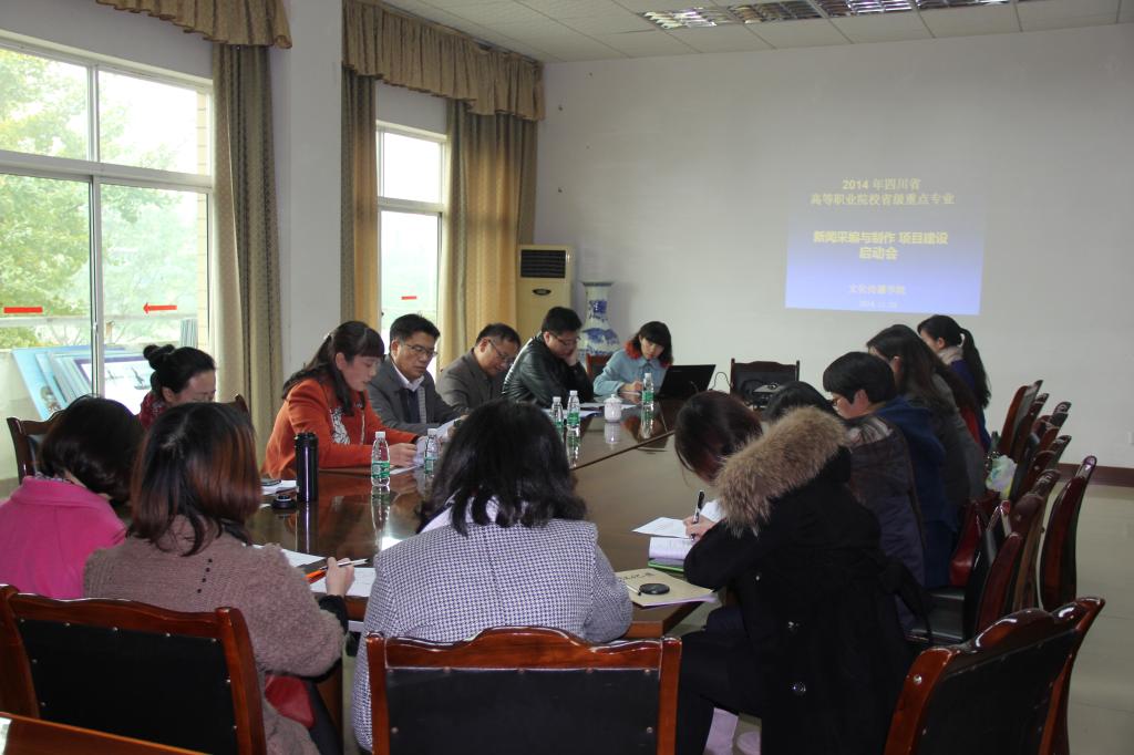 11月20日,我院召开了省级重点专业建设项目、校级精品资源共享课程建设项目启动会。学校副院长曹启富、示范办主任向天华出席会议。我院全体领导、省级重点专业团队成员、校级精品资源共享课程团队成员,教务科全体老师及新闻专业辅导员参加了启动会。会议由陈春宇主持。