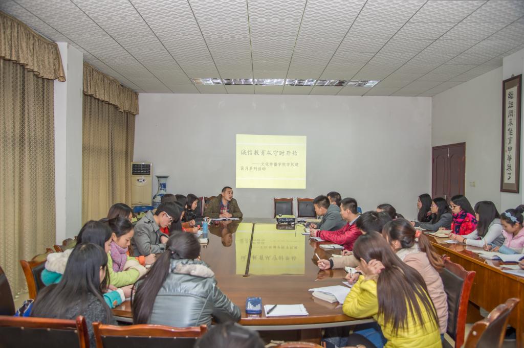 为进一步加强学风建设,营造更好的学习氛围,提高学生守时守信的自主能力,12月15日,文化传播学院在老行政楼三楼召开了以“诚信教育从守时开始”为主题的团日大会。学生科负责人、分团委书记毛浩杰,分团委副书记孙艺钊及全体团学干部参加会议。