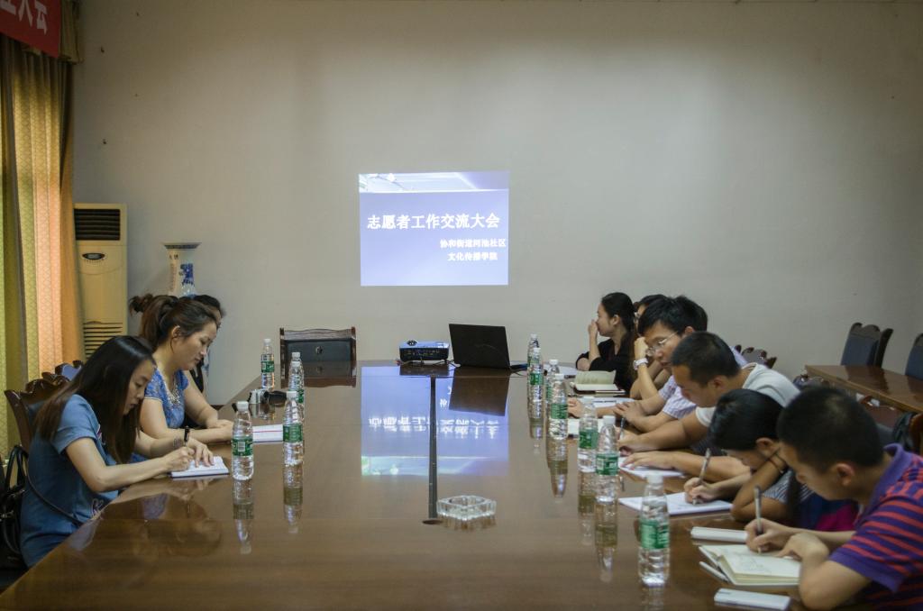 毛浩杰首先介绍了我院志愿者工作的开展情况。双方就志愿者工作开展的相关思路进行了交流和探讨。贾朝霞表示,希望借助我院志愿者服务队的力量,共同推动社区居民服务工作,河池社区也将会为大学生自主创业提供一定支持。郭光海指出,要进一步提高社会服务能力,主动服务社会,同时也希望社区能为学生志愿者活动提供必要的保障,做到双方共赢。舒畅认为双方在合作上可以寻找更多契机、利用更多方式、搭建更多平台,让志愿者在社区的工作更好地与所学专业相结合,充分利用自己专业特长。最后,双方还就“暑期阳光活动”、“4点半课堂”等具体活动项目进行了商定。