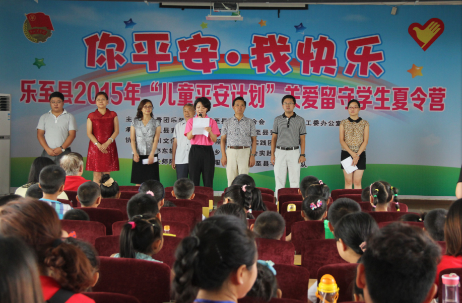 7月13日上午,我院暑期社会实践志愿团队前往乐至县参加当地组织的2015年“儿童平安计划”暑期社会实践夏令营活动开幕式。乐至县县委常委、县总工会主席李杰,副县长李炜,县人民政府、县关工委副主任杨玉和、曾凡友,团县委书记李丞,县妇联主席范丽娟参加了开幕式。