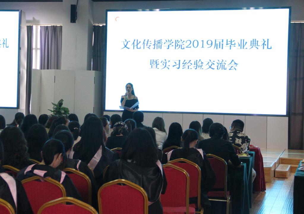 三年师友共追忆,千里之行正启航,又一届学子迎来毕业季。6月19日,文化传播学院2019届毕业生典礼在我校图书馆四楼举行。文化传播学院党总支书记、院长郭光海出席毕业典礼。学院各科室负责人、教师代表、全体辅导员、全体团学成员、全体毕业生参加典礼。典礼由优秀毕业生姚兴利主持。