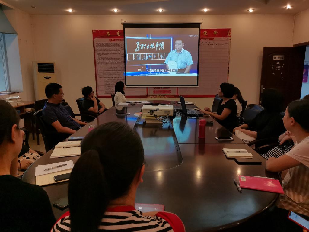 教师党支部书记李永红介绍了影片《红星照耀中国》的拍摄背景和历史意义。支部宣传委员黄妍分享了观影感受,她认为电影情节震撼人心,让我们看到了共产党人的坚定信仰。张旻昉谈到,她多次被影片中厚重的历史和不朽的精神所深深吸引和感动,深刻地感受到了战争年代中国共产党人的担当。党总支书记郭光海分析了影片的历史意义和现实意义,希望老师们铭记历史,坚守本职岗位,不忘教书育人的初心,牢记立德树人的使命,希望党员同志事事起到带头作用,有开创性地推动各项工作。