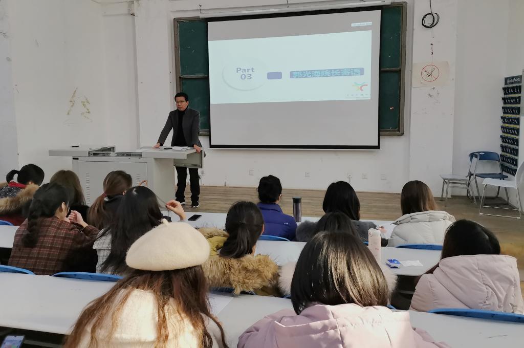 大会伊始,指导老师黄秋芬、闫翰慈分别就实习、就业相关要求和注意事项进行了讲解,强调在顶岗实习方面应注意学分获取、时间节点、实习要求等问题,并提醒同学们求职简历需完整,求职态度需端正。随后,郭光海上台致辞,他强调:一是要充分认识顶岗实习的重要性;二是积极调整心态,认真完成顶岗工作;三是加强与学校、父母的联系;四是提高安全意识和驾驭风险能力。