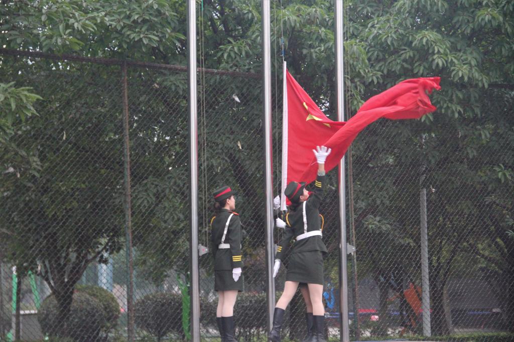 英姿飒爽的国旗护卫队迈着整齐矫健的步伐走上升旗台,全体到场人员奏唱国歌,鲜艳的五星红旗冉冉升起,整个校园迎来新的朝气,新的热情。