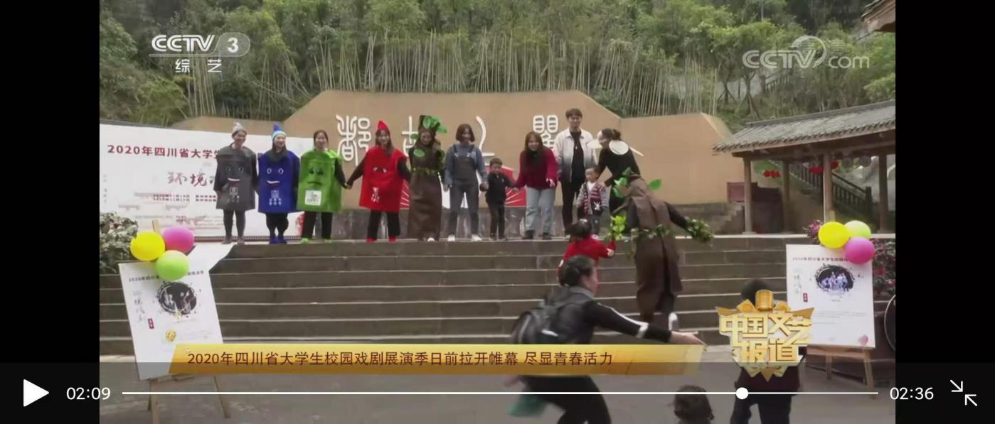 现场观众与演员们亲切互动,引发了观众对爱护环境、保护环境的思考,演出圆满成功。课外展演形式,加强理论教学和实践教学的紧密结合,对于编导专业同学熟练掌握现场及演员调度能力、人物塑造能力、团队协作能力等提供平台,切实提升学生的专业能力。该剧展演实况获中央电视台综艺频道《中国文艺报道》栏目报道。