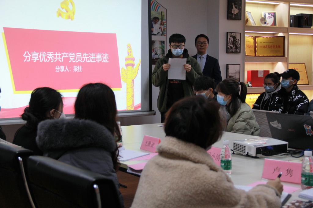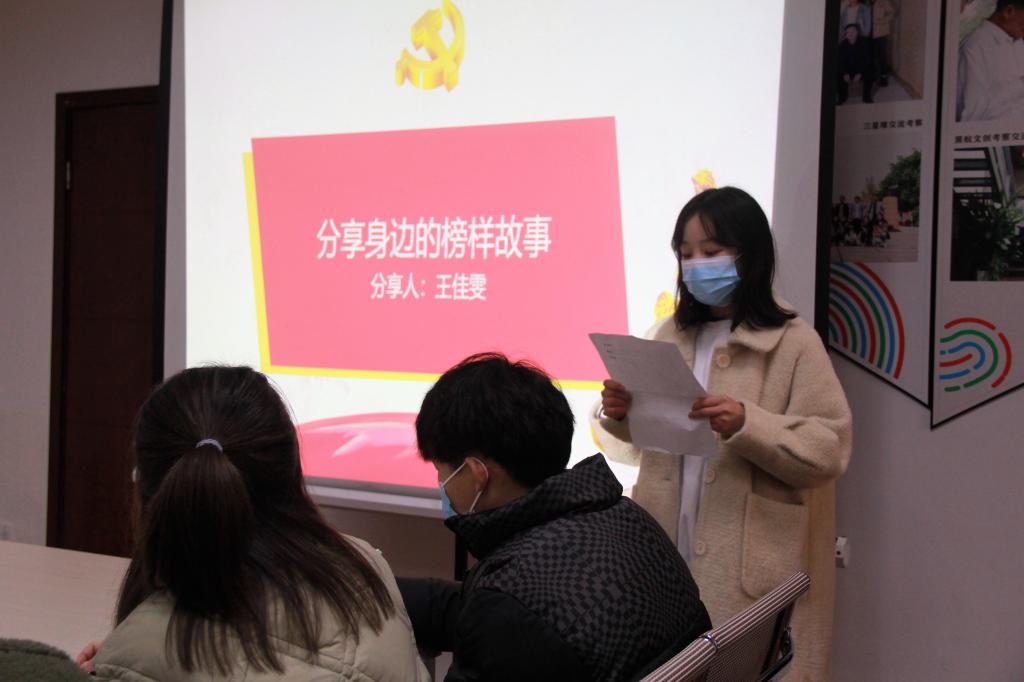 会上,支部成员积极围绕《中国共产党历史》阅读心得、优秀共产党员先进事迹、身边榜样故事三个篇章进行分享。我院分团委学生兼职副书记、预备党员梁柱同学分享了“最美奋斗者”王瑛同志的先进事迹,并结合人物故事与自身体会谈到:“王瑛同志精神可贵之处在于她牢记党的教育,不畏权贵、敢于碰硬。我们身为中国的新青年,应学习她忘我的工作精神与奉献精神,自觉遵守和执行党章党纪。”预备党员陈玉芳同学在谈到身边的榜样故事时更是几度哽咽,并表示,党和国家在学习和生活上给予她很多帮助,虽然自身力量微薄,但也希望能通过自身努力,去帮助更多需要帮助的人。本次分享会还融入党史人物竞猜、红歌竞猜等游戏环节,充分调动活动气氛,进一步加强支部党员的交流与融合。