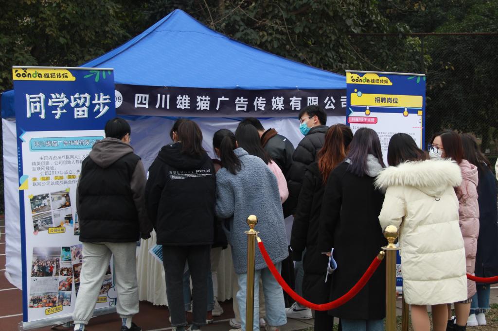 12月29日,我校2021届毕业生双选会在文星湾足球场举行。学校院长罗晓东、副院长肖必恒、招生就业处吴兴彬来我院设点处视察,我院党总支书记卢隽、副书记毛浩杰、就业干事张浩、辅导员熊恩剑陪同。此次双选会参会公司共15个,涵盖记者、播音主持、后期制作、文案、编导、摄影、剪辑、抖音运营等诸多工作种类,为毕业生提供了众多选择。