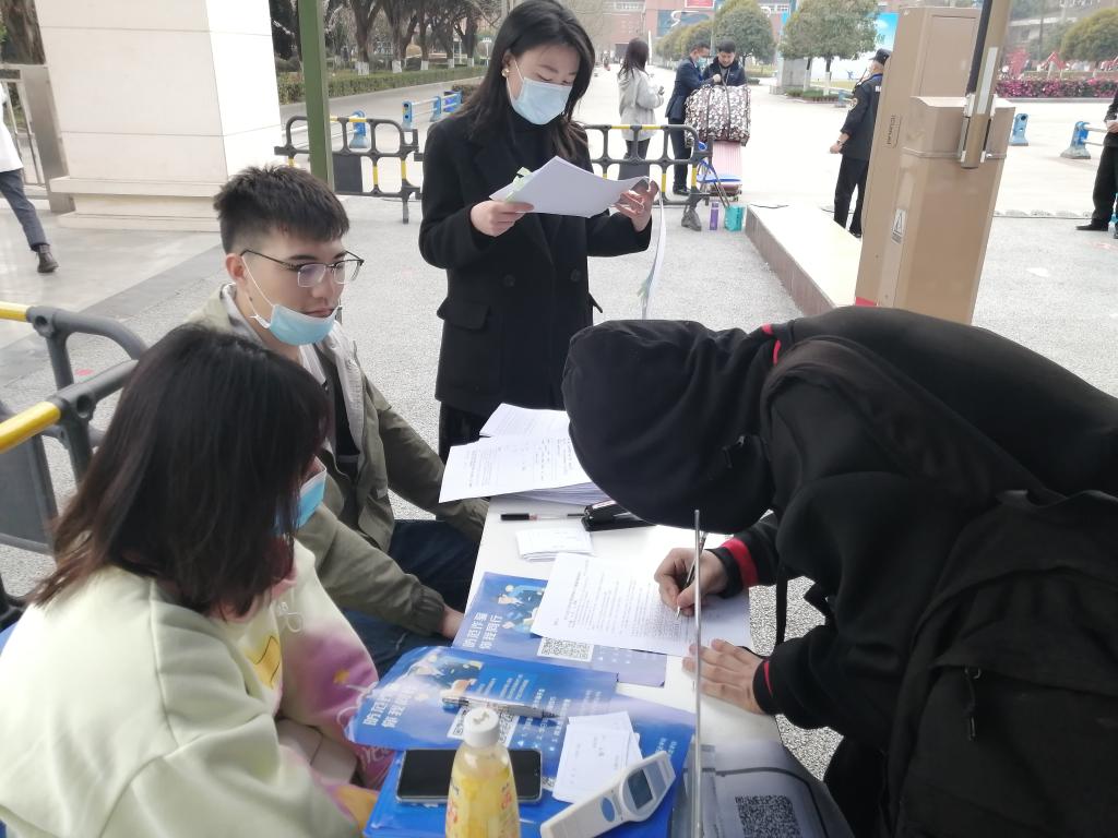 3月4日至3月5日,融媒学院为贯彻落实学校疫情防控工作政策,方便学生安全有序返校报到,本学期仍然采取不同年级、不同批次学生错峰返校方式。学院党总支书记卢隽、党总支副书记毛浩杰亲临现场指导工作。