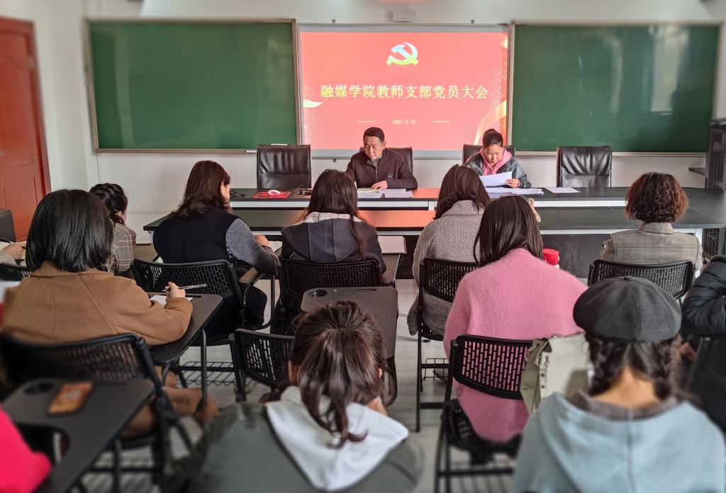 3月25日下午,融媒学院教工党支部在颖艺楼308会议室召开党员大会,会议由支部书记鲜力东主持。