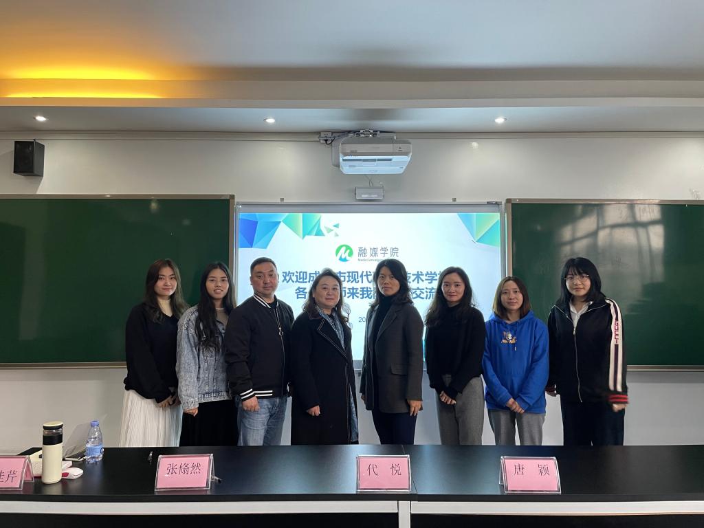 10月28日上午,成都现代职业技术学校科研处主任邓涛、计算机应用专业负责人李瑞及专业教师一行到融媒学院考察交流。融媒学院副院长唐颖,影视多媒体技术、广播影视节目制作专业教师及教务科召集人与来访客人在颖艺楼308会议室进行了座谈交流。