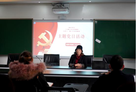 此次活动还学习了省委十一届十次全会精神,教工党支部将认真贯彻落实上级工作部署,把学习宣传贯彻十九届六中全会精神作为当前和今后一个时期的重大政治任务,以学习党的十九届六中全会精神为重点巩固党史学习教育成果。党员教师们纷纷结合国家的发展实际和自己的工作情况,在会上做了学习体会交流发言。党员教师严妍从“为什么建党百年之际,我们党要做出第三个历史决议”“为什么说‘两个确立’具有决定性意义”“新征程上如何以史为鉴,开创未来”这三个问题入手,对党的十九届六中全会精神进行了深入阐释。党员教师彭德惠结合教书育人的本职工作谈了自己的想法。她说作为高校教师,我们应该快速地把党的十九届六中全会精神带到青年学生中去,引导他们厚植爱国主义情怀,树立远大志向,珍惜在校学习时光,为国家建设增强本领、积蓄力量。支部第二党小组组长母华,结合第二党小组开展十九届六中全会精神学习活动的情况作了汇报。她说,第二党小组全体党员认真观看了中共中央解读党的十九届六中全会精神的新闻发布会,通过线上观看学习视频、线下阅读文件、组织交流讨论的方式开展学习活动,大家学习热情高,学习态度端正,取得了良好的学习效果。