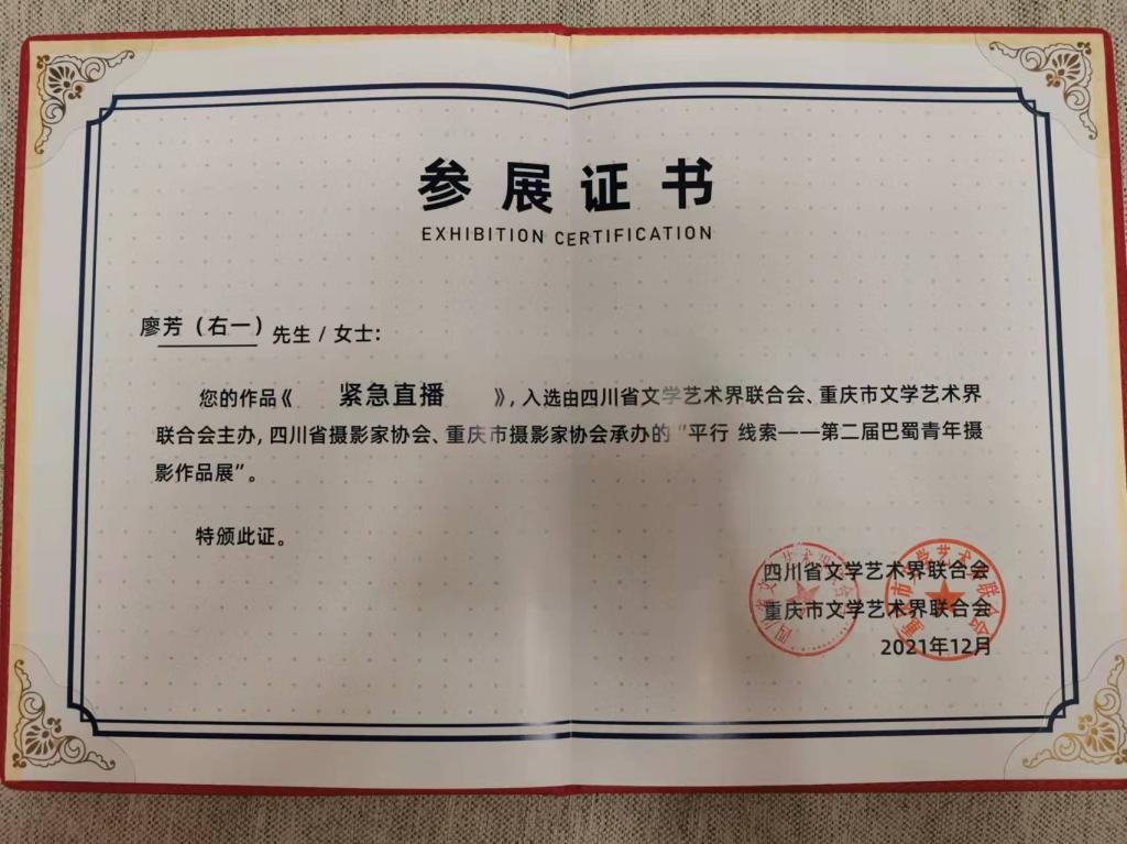 融媒学院廖芳老师作为四川地区青年摄影师参展,师生作品《紧急直播》获得良好社会评价。展览期间,廖芳受邀参加巴蜀青年摄影论坛,并于20日在四川省文联参加学习贯彻落实中国文联第十一次全国代表大会精神专题会议暨“平行.线索——第二届巴蜀青年摄影作品展”工作座谈会,会上廖芳老师围绕巴蜀青年摄影作品展、推动川渝两地青年摄影事业发展等进行了交流。