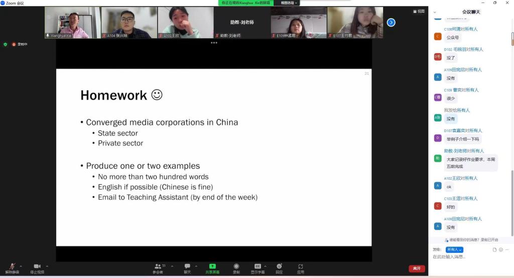 10月10日,四川文化产业职业学院与新加坡南洋理工大学开展的国际课程教学顺利开课。此次国际课程授课对象为融媒学院新闻采编与制作专业,网络舆情监测专业50余名学生。首堂课是新加坡南洋理工大学谢教授以中英文双语讲授的《技术创新与发展》,谢教授通过直播授课、远程访问、互动交流等多种形式拓展学生视野,带领学生放眼世界,了解、学习传媒领域技术与创新。
