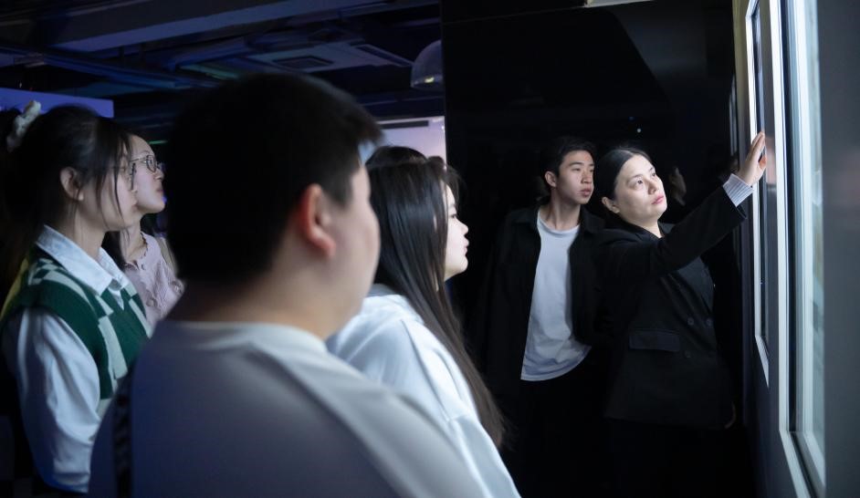 力方国际数字科技集团作为国内视觉科技的独角兽,也是融媒学院校企合作企业之一。学生们在集团参观负责人的带领下,先后参观了力方集团的办公环境与项目展示厅,通过讲解互动、演示参与等实操方式,学生了解项目内容、项目流程以及感受项目体验,深刻感受“科技赋能,文化赋魂”的企业文化。在分享过程中,同学们针对数字交互模式制作、行业发展趋势等方面提出疑问,负责人现场一一解答同学疑问。这种沉浸式体验帮助同学进一步了解行业发展,提升了专业理解力和认知力。