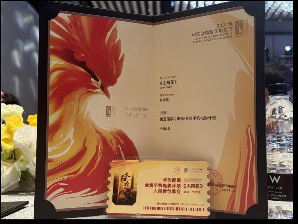 2024年11月14日至16日,第37届中国电影金鸡奖在厦门隆重举行。作为本次电影节的特别单元之一,华为影像·金鸡手机电影计划于16日揭晓最终结果。经过全球5813部投稿作品的激烈角逐,共有62部作品成功入围。其中,由融媒学院学生团队创作的剧情短片《太阳花》脱颖而出,获得入围奖项及荣誉证书。