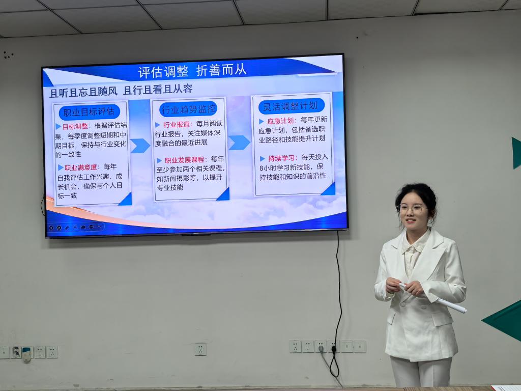 决赛现场,选手们通过PPT充分展示了自己的职业规划理念、目标和实施路径。选手们或沉稳大气,或活力四射,以独特的视角阐述自己的职业目标与规划,展现出对未来的无限憧憬。