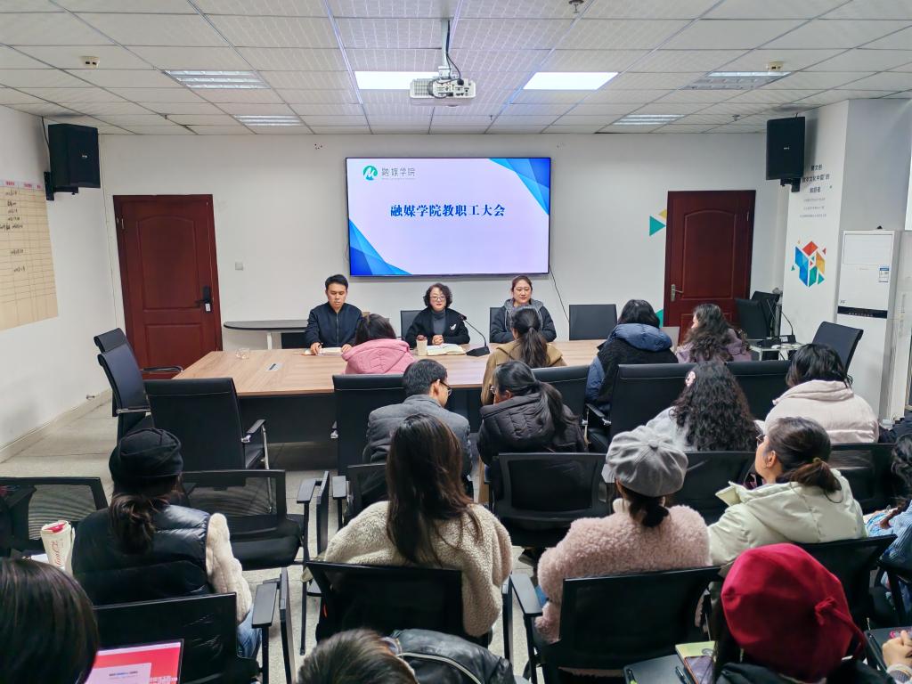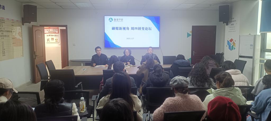 2025年2月27日,融媒学院召开首期“融媒新视角,周四创变论坛”主题学习会。由融媒学院党总支书记卢隽主持,院长秦勉、副书记邹渝及全体教师参加会议。
