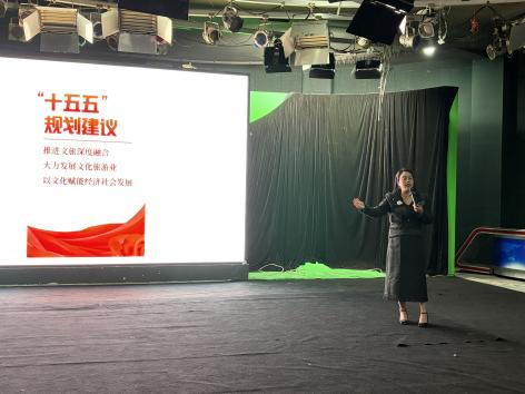 讲座中,阿飒Elsa结合四川电视台采访视频与自身经历,讲述了从珠宝电商转型文旅赛道的成长历程。她依托抖音官方数据拆解本地生活行业发展现状与趋势,结合国家 “十五五” 规划文旅融合政策,让学生明晰行业发展空间。同时,她围绕主播、运营等四大核心岗位,结合实操案例讲解能力要求与实战技巧,将课堂理论与行业场景深度融合,并通过各类素材直观展示直播实战成果。