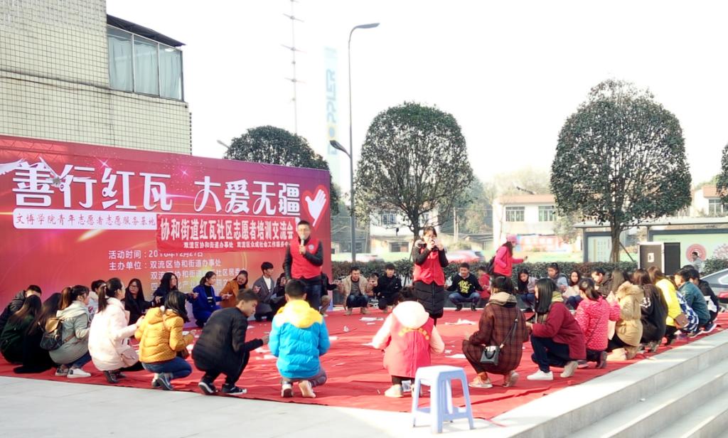 12月27日,在红瓦小区举行了“善行红瓦 大爱无疆”文博学院青年志愿者服务基地授牌仪式暨协和街道红瓦社区优秀志愿者表彰大会。本次活动由我院和双流区协和街道红瓦社区居委会联合主办。协和街道党工委委员罗晓梅,红瓦社区党支部副书记李行炳,我院副院长袁干劲,院分团委书记王力等出席了此次活动。