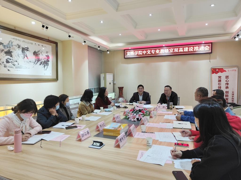 4月2日中午,文博学院(非遗与巴蜀文化教育传承基地)在创慧楼二楼会议室召开了中文专业教研室双高建设推进会,学院党总支书记唐天卿、中文专业全体教师、文创及首饰专业群负责人、行政教辅人员参加了会议,行政负责人岳湛主持会议。