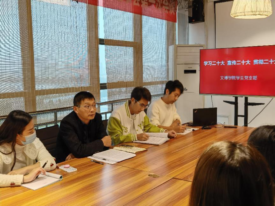 12月7日下午,文博学院学生党支部在图书馆九楼会议室集中学习党的二十大报告精神。会议由学生党支部代支部书记刘佩凡主持。
