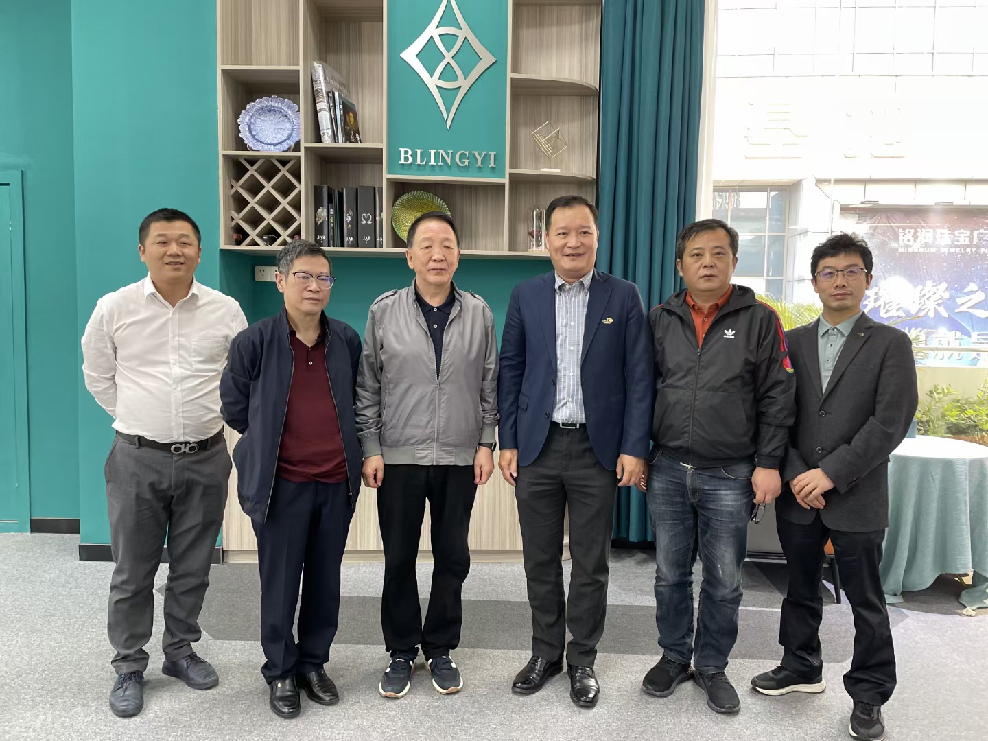 陈其余首先对吴威会长的热情接待表示感谢。他指出,通过实地考察,番禺有着非常完善的珠宝产业链,工艺水平非常高,校企双方可以在资源共建共享,产教融合,基地建设、产品开发等方面加强合作。