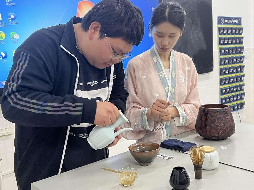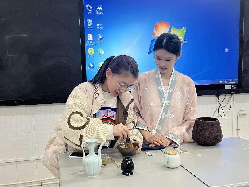 为进一步推进三教改革,打造多元化课堂教学模式,丰富学生的传统文化学习体验,文物修复与保护专业通过引入外部优质教学资源,提升学校课程品质和学生的综合素质水平。近日,邀请成都仕茶师品牌管理有限公司高级点茶师在《讲解实务》课上为同学们展示宋徽宗赵佶在《大观茶论》最为精彩的内容之一“七汤点茶法”。