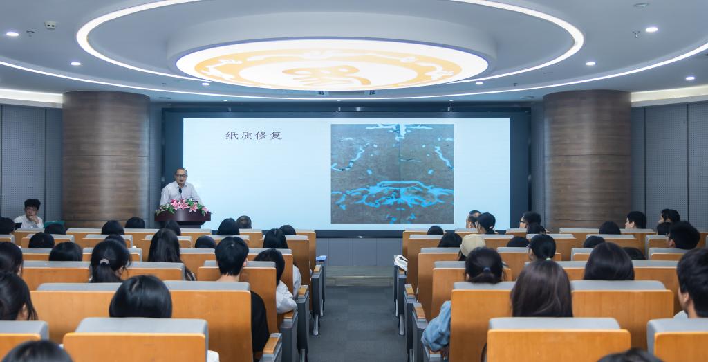 讲座中,舒光强从纸质修复、绢本修复、泥金扇等专业维度深入切入,对中国文物修复的现状进行了深刻剖析。凭借自身丰富的海外修复经历,他指出中国文物修复在历史文化、工艺流程、预防保护、美学意义、陈列展示等方面呈现出独特的客观现状。着重强调文物保护和修复正朝着多元化发展以及更为纵深的方向不断延伸。