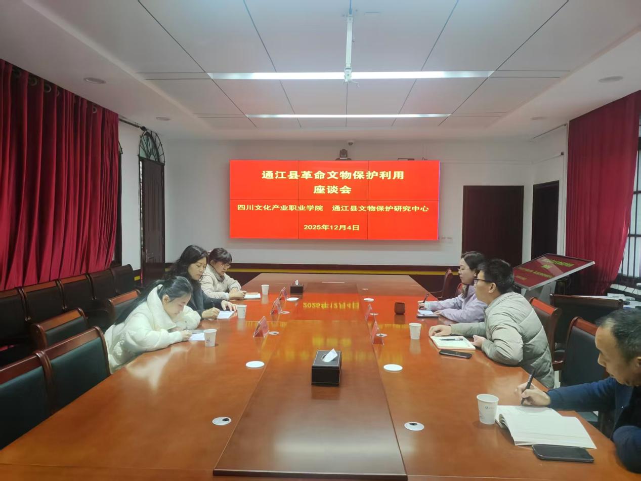 调研期间,学院团队与通江县文物保护研究中心主任王敬、通江县文化馆副馆长曾建飞等展开了深入的座谈交流,重点考察了通江县革命文物遗存与非遗项目的保存现状和单位实际需求。双方就资源普查、数字化采集要求、红色文化传承需求等交换意见,为推进校地深度合作做好前期准备。