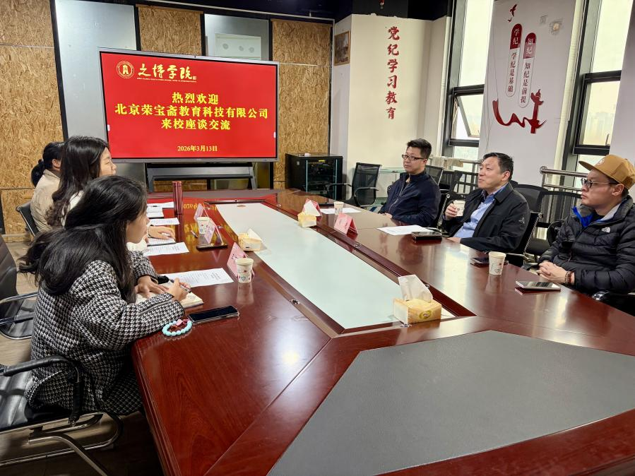 近日,荣宝斋教育科技公司总经理冯尧一行3人到访学院开展交流座谈。文博学院副院长唐颖主持会议,文物修复与保护、文化创意与策划专业主任参加交流。