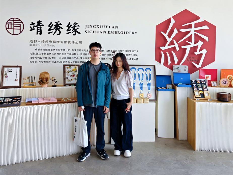 4月9日,文博学院服装与服饰设计专业教师姜旭、陈岑赴蜀绣之乡安靖镇对成都数智文博市域产教联合体单位,成都市靖绣缘蜀绣有限责任公司开展访企拓岗调研,并在企业经理王高杰的陪同下实地考察了课程思政案例微课拍摄的相关事宜。
