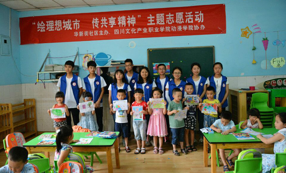 为深入贯彻习总书记关于青年成长成才的一系列重要论述,以实际行动落实省十一次党代会精神,引领和帮助广大青年学生在社会实践中受教育、长才干、作贡献,近日,动漫学院开拓者自愿服务队在指导老师王毓的带领下在华阳华新街社区开展了以“我心中的理想城市”为主题的暑期“三下乡”社会实践活动。