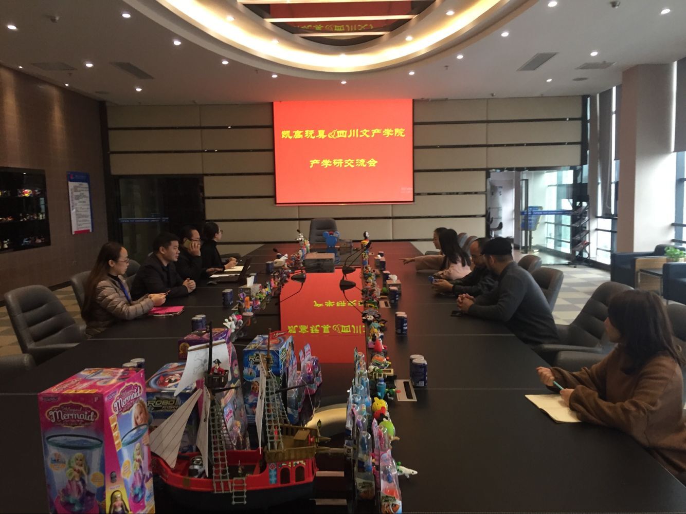 陈书记一行先后参观了四川美术学院罗中立美术馆、影视动画学院作品陈列展、重庆工商大学现代国际设计艺术学院实训基地,并就实训室、工作室的建设、管理等问题与同行进行了交流探讨,学习他们的先进经验。在实地调研重庆市三六五天使科技有限公司、凯高玩具(重庆)有限公司后,与公司方就校企合作的问题进行了深度交流,并与凯高玩具(重庆)有限公司在动漫衍生品领域达成初步合作意向。