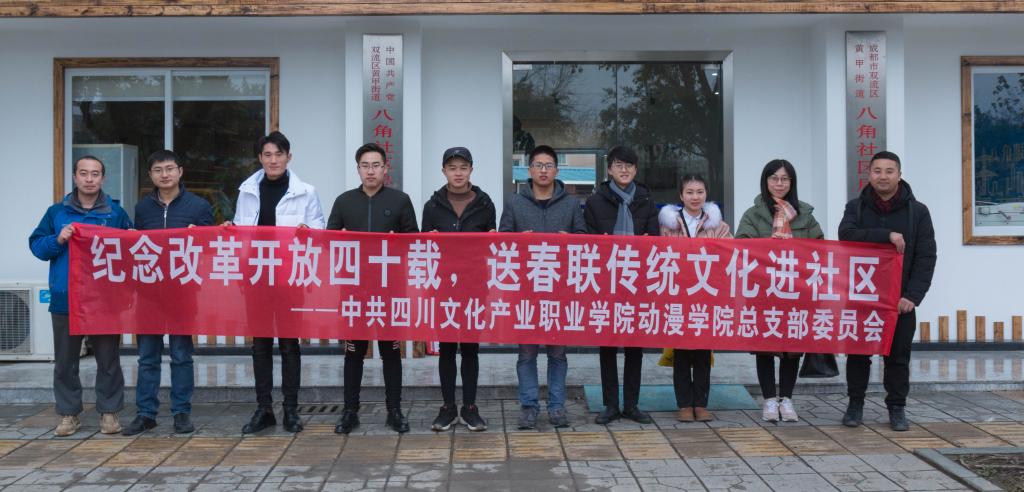 为进一步加强党员志愿服务队伍建设,做文化自信的坚定践行者。1月2日上午,动漫学院党总支师生党员、学院民主党派教师以及翰林书画社社员一行来到双流区黄甲街道八角社区开展送春联志愿服务活动。