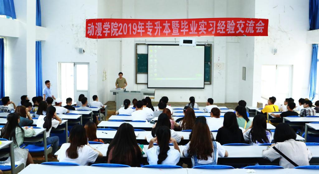 6月18日中午,动漫学院在三教213教室举办专升本暨毕业实习经验交流会。会议由学工科负责人唐雷主持,共计80人参加。