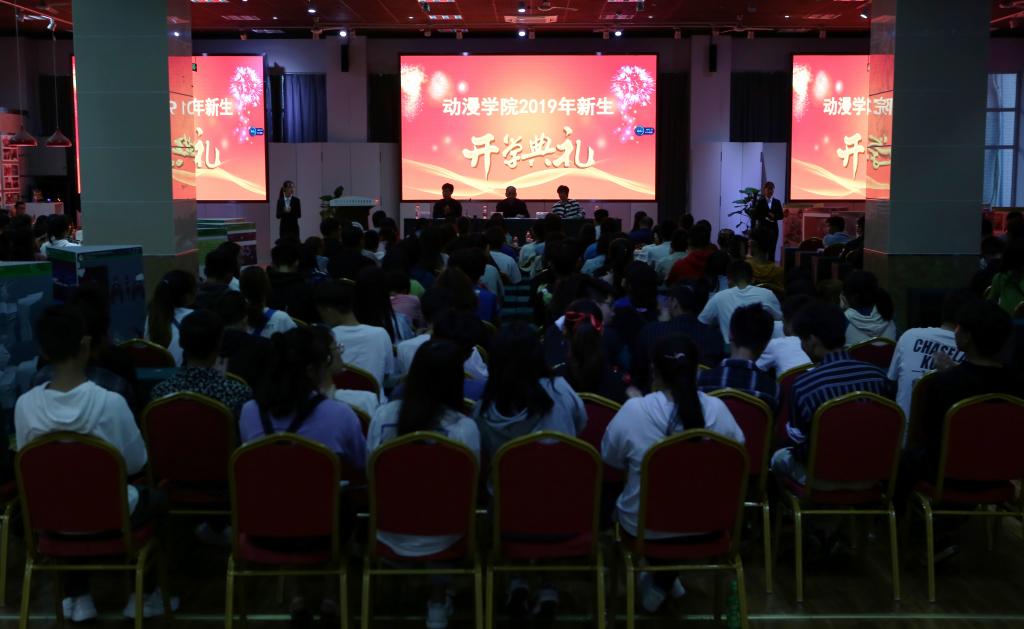 9月19日晚6点,动漫学院在图书馆四楼举行2019年新生开学典礼。典礼由党总支副书记罗丽主持,19级全体新生及学院全体教职工参加,共计280余人。