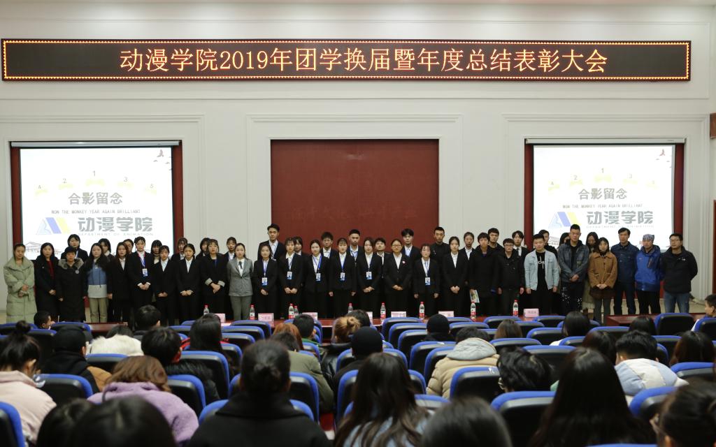 12月25日中午,动漫学院2019年团学换届暨年度总结表彰大会在二教105举行。
