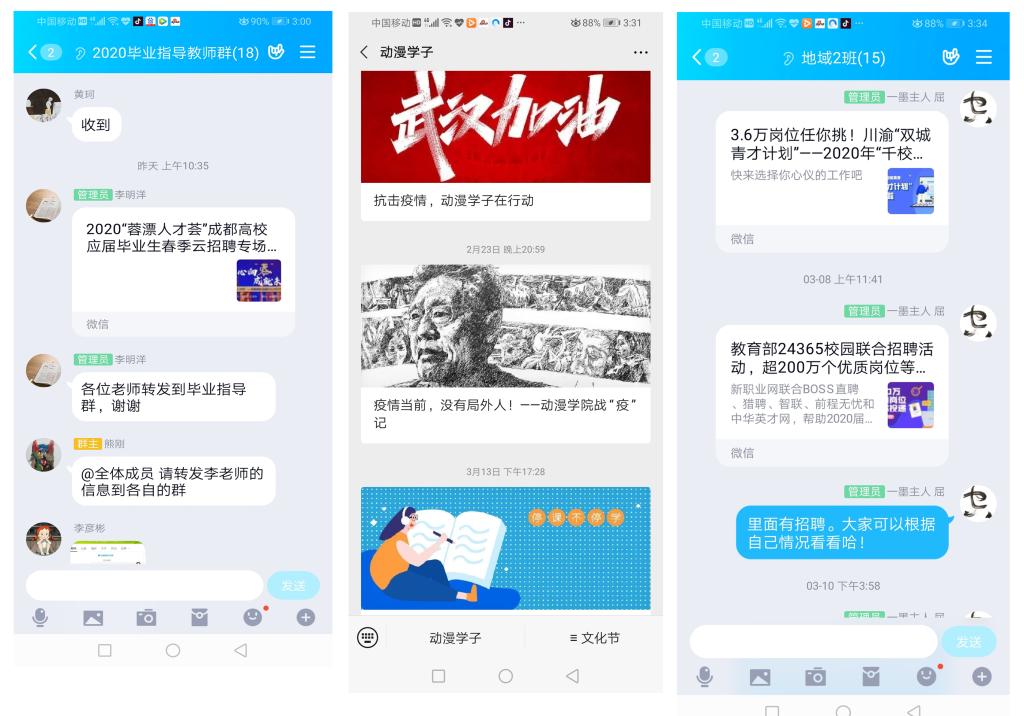 疫情虽然阻止了现场招生、招聘工作的步伐,但网络架起了信息沟通的“桥梁”。为确保2020年招生、就业工作顺利开展,动漫学院发动师生、加强网络宣传与信息推送,尽可能降低疫情造成的影响。