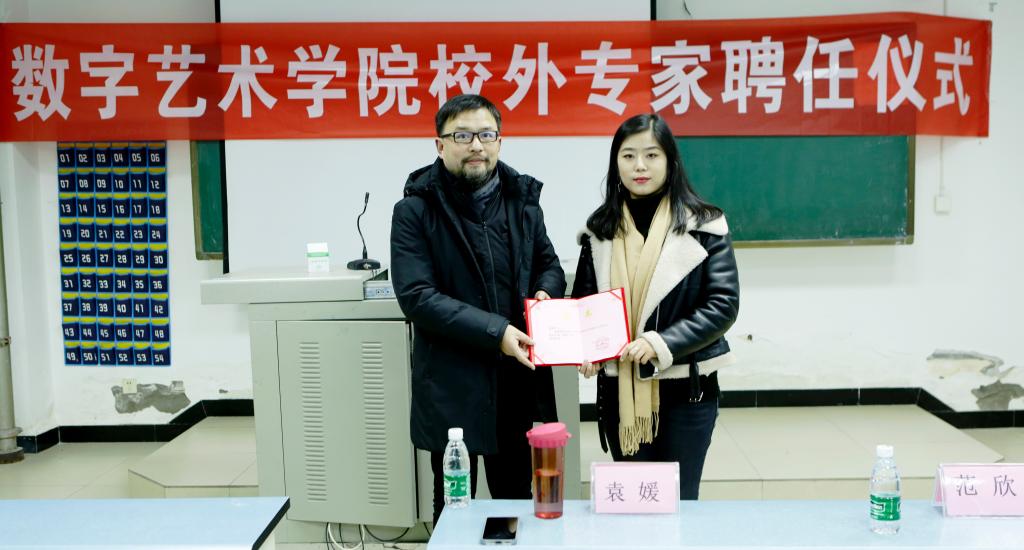 为给毕业生提供一个更加广阔的展示平台,促进同学间的交流共享,将毕业设计的评判权交给社会,1月4-8日,数字艺术学院组织2021届游戏设计、产品艺术设计专业200余名毕业生开展毕业答辩。在答辩现场,学院院长范欣为袁媛、袁雨林两位企业负责人分别颁发了数字艺术学院校外专家聘书。