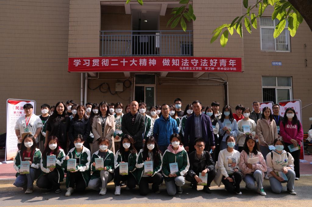 为进一步做好校园法制宣传教育工作,提高新时代大学生法制意识和自我保护意识,树立社会法治理念,营造平安校园环境。2022年11月1日上午,艺术设计学院学生党支部联合马克思主义学院、校学工部在女生寝室园区内举办“学习贯彻党的二十大精神 做知法守法好青年”主题普法宣讲活动。