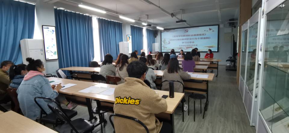 学习会上,何东带领老师们共同学习了《高等学校教师职业道德规范》和《新时代高校教师职业行为十项准则》相关内容,并对有失教师道德的警示案例进行分析,《新时代高校教师职业行为十项准则》是对广大教师的警示提醒和严管厚爱,是深化师德师风建设,造就政治素质过硬、业务能力精湛、育人水平高超的高素质教师队伍的关键之举。何东强调,教师要成为大先生,做学生为学、为事、为人的示范,促进学生成长为全面发展的人。大学生正处于人生观、世界观、价值观形成的关键时期,他们的价值观正确与否,不仅关系到个人的发展,更直接关系到社会主义建设事业和中华民族的未来。作为一名高校教师,立德树人是人才培养的核心,要以学生为中心,在课堂上要注意自身的言行举止,塑造良好的教师形象,既要教书也要育人,不断提升自己的思政修养,树立高尚的师德师风,以身作则,为人师表,成为学生成长路上的引路人。