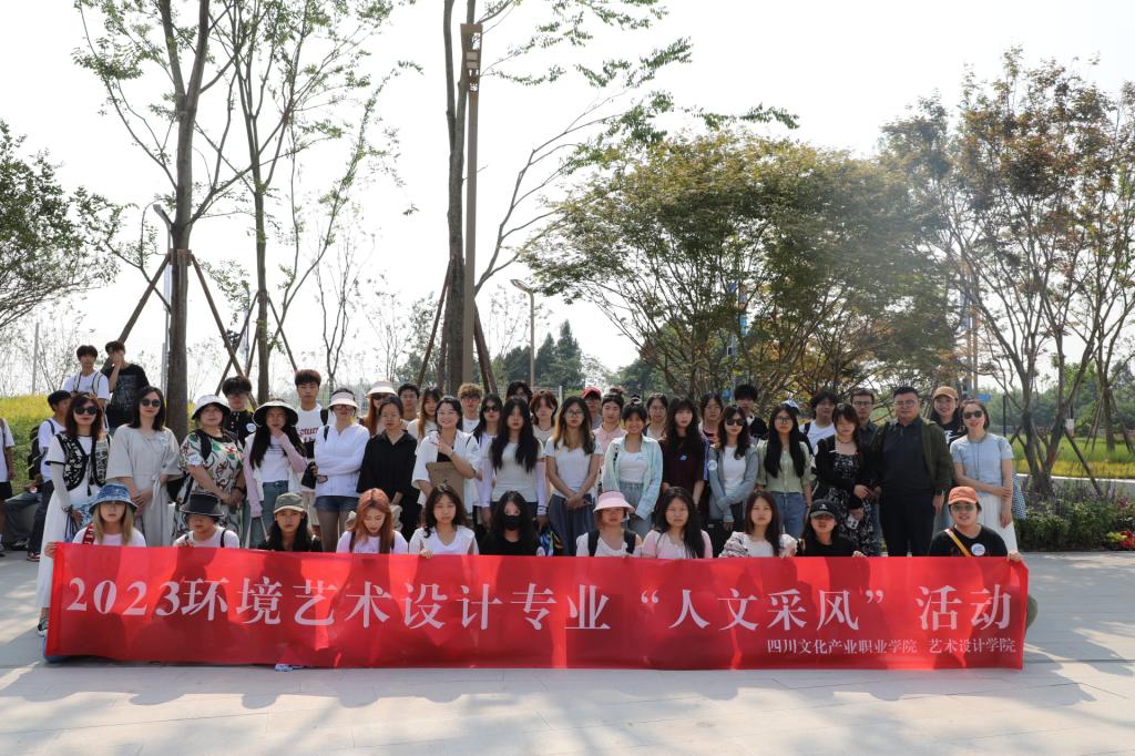随后,2023级环艺专业群学生按照课程计划分别在南湖公园、兴隆湖公园、天府公园、麓湖云朵公园、校内开展《人文采风》课程实践活动。课程中老师带领学生到实践场地,对周围环境,写生过程中关于构图,表现手法进行了讲解,学生按照要求通过观察、感受进行现场写生。通过本次人文采风课程实践活动,同学们不但专业手绘能力得到了提升,也提高了自己的艺术审美能力和创作能力。
