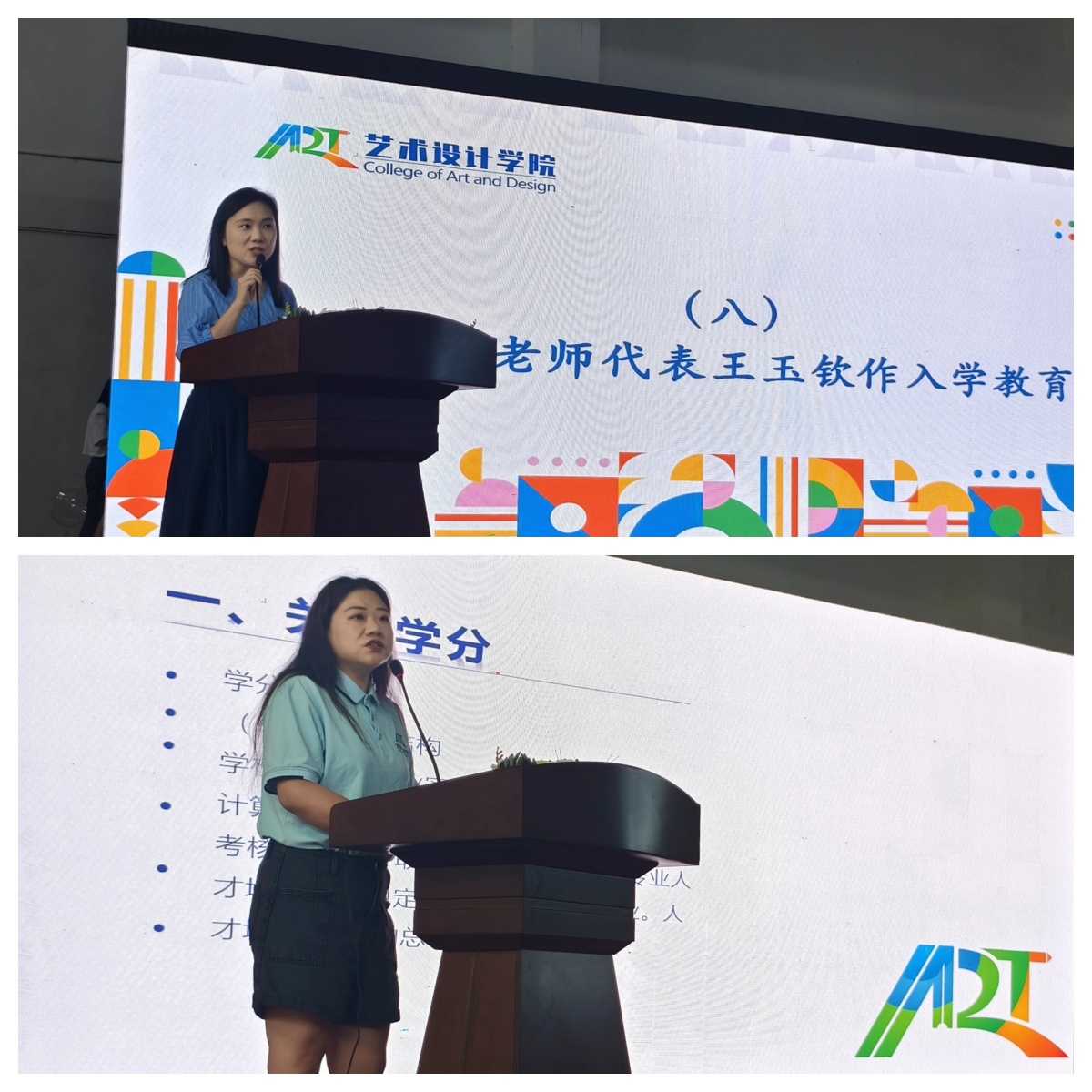 随后,学工科王玉钦老师和教务科胡亚兰老师分别为新生作学生管理和教育教学主题入学教育。
