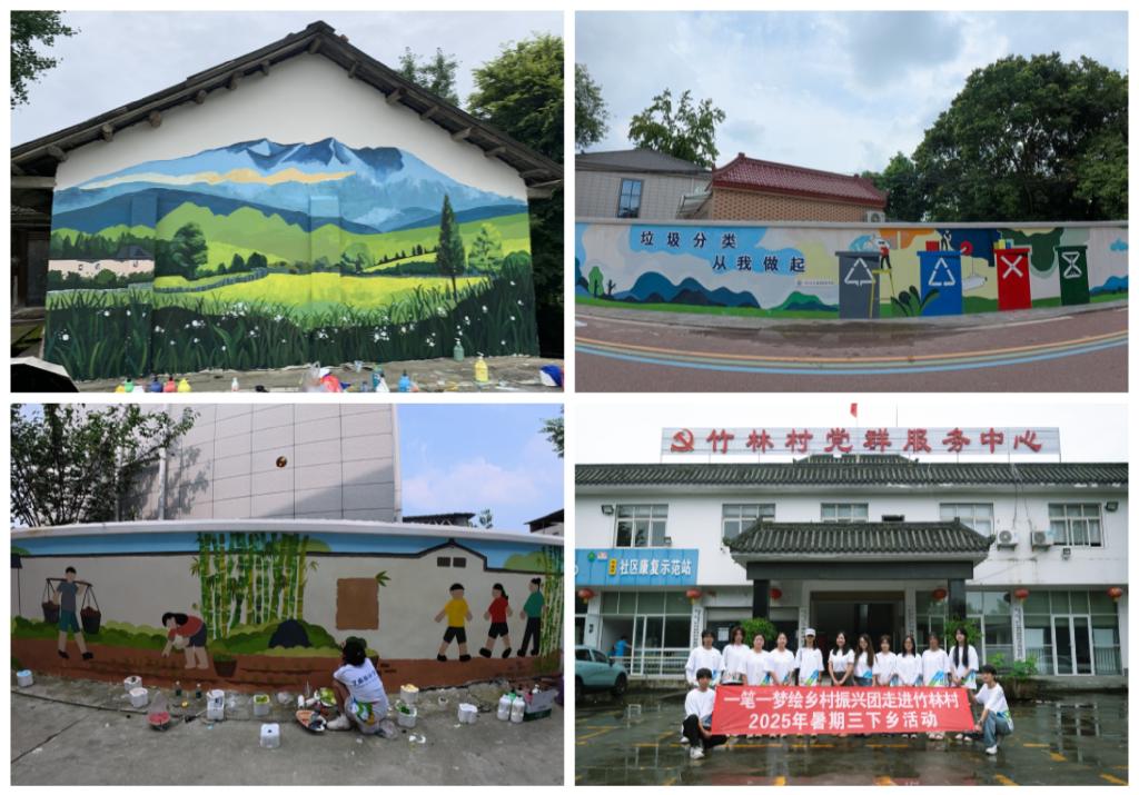 乡村振兴,文化为魂。2025年7月2日至8日,由我校艺术设计学院12名积极分子组成的“一笔一梦绘乡村振兴实践团”,赴成都市郫都区唐昌镇竹林村开展暑期“三下乡”活动。在陈巧、王玉钦老师带领下,团队以墙绘艺术完成三幅大型主题创作,为乡村文化建设赋能。