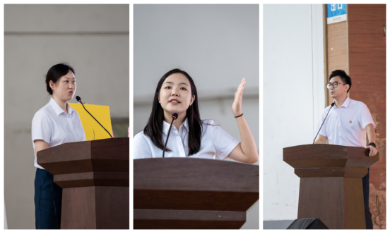 最后,教务科老师代表牟娅作教学管理层面的入学集中教育,学生党支部书记陈巧、分团委书记王哲浩作党团层面的入学集中教育。