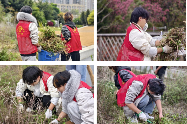 实践过程中,志愿者们化身校园“美容师”,按照分工组成清扫组、清理组、保障组协同作战、密切配合。大家不畏脏累、干劲十足,弯腰捡拾落叶、拔除杂草、清理枯枝,细致清理绿化带及花坛内的白色垃圾、杂物,不放过任何一个卫生死角。带队老师们全程扎根一线,既是指导者也是参与者,与同学们一同弯腰劳作、并肩奋斗,耐心指导清扫技巧,及时解决实践中遇到的问题。劳动现场热火朝天却秩序井然,同学们互帮互助、分工协作,汗水浸湿衣衫却笑容依旧,用双手诠释着青年学子吃苦耐劳、团结协作的良好风貌,用行动践行着“为同学服务、为校园奉献”的初心。