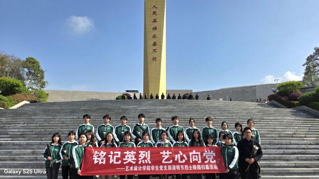 为深入推进红色育人走深走实,传承红色基因、弘扬英烈精神,厚植青年学子爱党爱国情怀,以艺术力量赋能红色文化传播,在清明节来临之际,艺术设计学院党员教师代表、积极分子代表、团委学生会代表一同前往成都市烈士陵园,开展“铭记英烈 艺心向党”——烈士陵园缅怀先烈主题志愿服务活动,以青春之名追思革命先烈,以艺术初心践行向党誓言,为红色精神传承注入青春动能。