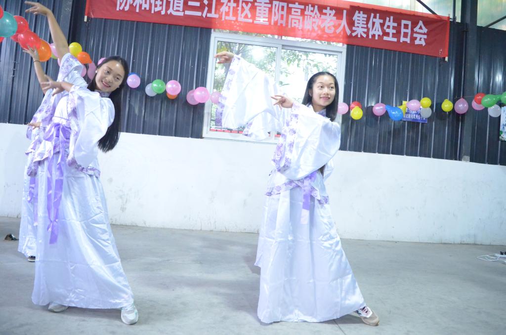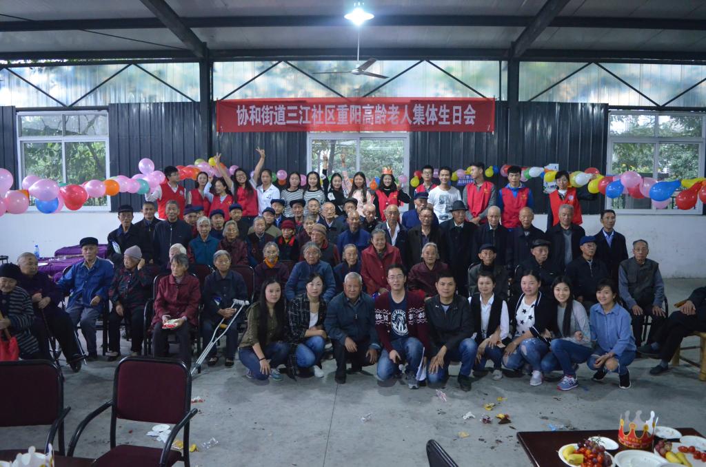 9月9日下午5点,三江社区活动室热闹起来,我院志愿者在2016年重阳节来临之际,来到双流区协和街道三江社区开展文化慰问活动,并为社区52名70岁以上的老人集体过生日。