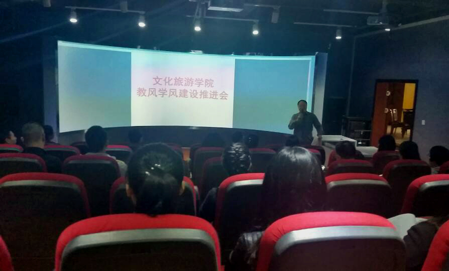 10月27日中午,我院在模拟导游实训室召开教风学风建设工作推进会,会议由院长李晓波主持,承担我院本学期教学任务的专兼职教师、外聘教师参加了会议。