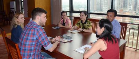 梁中正副院长介绍了外籍教师的课程安排,并就相关专业特点、学生基础情况、教学规范要求等作了详细说明。
